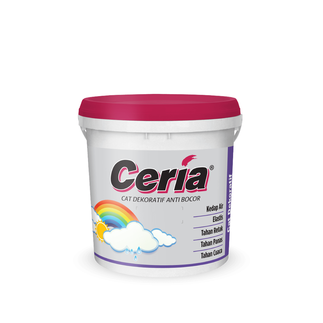 Ceria CR-6000 Cat Dekoratif Anti Bocor ketahanan eksterior yang baik, anti bocor, memiliki elastomeric yang dapat menutupi retak rambut pada dinding, tahan terhadap alkali, daya rekat yang baik ke substrat, mudah diaplikasikan, cepat kering, lebih tahan lama, serta tersedia dalam warna-warna yang cerah dan indah.