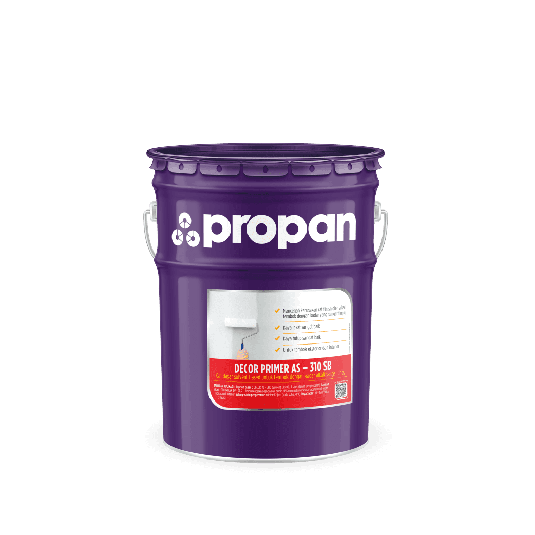 Decor Alkali Resisting Primer AS – 310Â adalah cat dasar tahan alkali berbahan dasar solvent untuk tembok. Produk ini cocok untuk mengecat tembok baru seperti tembok beton, plaster semet, semen asbestos dan panel GRC. Sangat efektif untuk mencegah kerusakan cat oleh tingkat alkali yang sangat tinggi dari semen. DECOR ALKALI RESISTING PRIMER AS – 310 memiliki daya penetrasi dan daya lekat baik sehingga memberikan hasil yang sempurna untuk lapisan cat akhir.