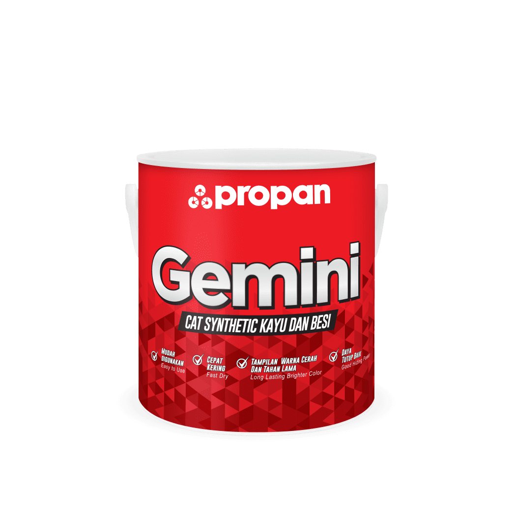 GEMINI SYNTHETIC adalah cat sintetik serbaguna, cocok untuk pengecatan kayu & besi baik untuk interior maupun eksterior.