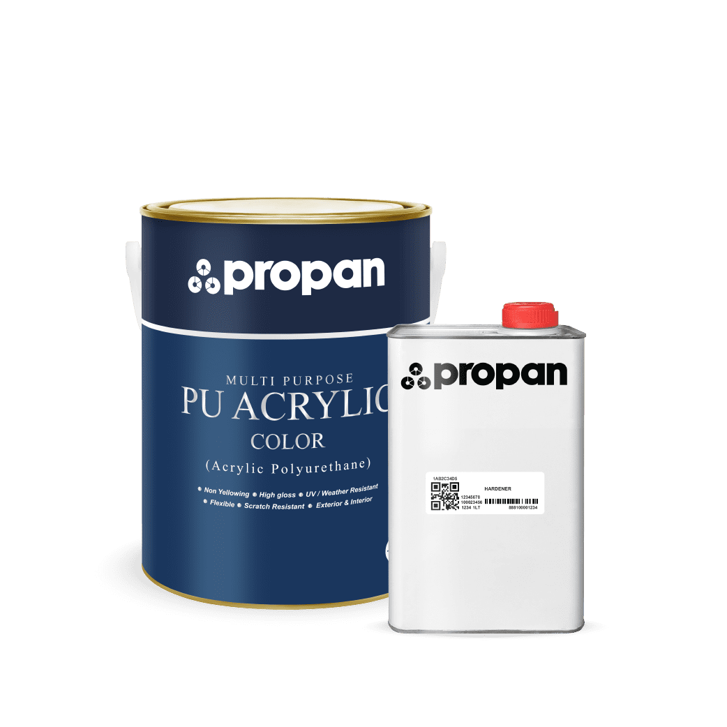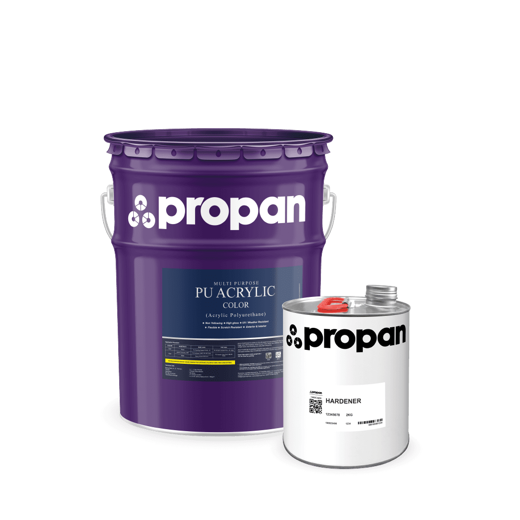 Acrylic Polyurethane 2K Solid Color yang tidak menguning dan tahan cuaca, mempunyai daya lekat yang baik diatas kayu, besi, dan beton untuk pemakaian di interior & eksterior.