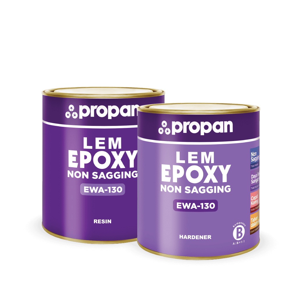 PROPAN LEM EPOXY NON-SAGGING adalah lem epoxy 2 komponen yang terdiri dari resin dan hardener yang mengandung filler sehingga dapat digunakan sebagai dempul seperti untuk menutup lubang kecil pada permukaan substrat, dapat diaplikasikan pada kondisi kering, lembab dan di dalam air.
