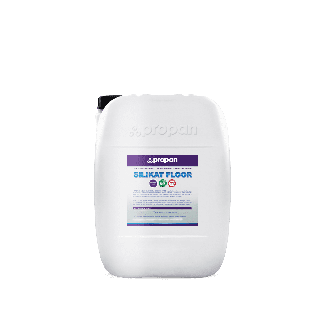 SILIKAT FLOOR adalah “lithium silicate floor densifying system”yang terdiri atas penetran SKF-201-1K WB dengan top seal SKF-203-1K WB. Pentrat SKF-201-1K WB adalah cairan bening lithium silicate yang berpotensi penetrasi ke dalam permukaan beton sedalam ± 5 mm dan bereaksi dengan kalsium hydroxide (CaOH2) yang terkandung di dalam beton hingga terjadi reaksi silicafication yang membuat permukaan beton menjadi kuat dan semakin keras. Setelah itu diberi top seal SKF-203-1K WB dan di polish sampai mengkilap.