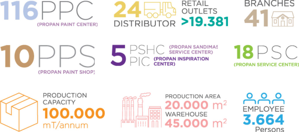 Sejak itu, serangkaian produk inovatif dikembangkan Propan Raya seperti pelapis pelindung logam, lantai polimer, kedap air, pelapis plastik, dan cat refinish mobil. Dengan visi menjadi perusahaan pelapis permukaan dan kimia bangunan paling inovatif dengan kualitas kelas dunia.